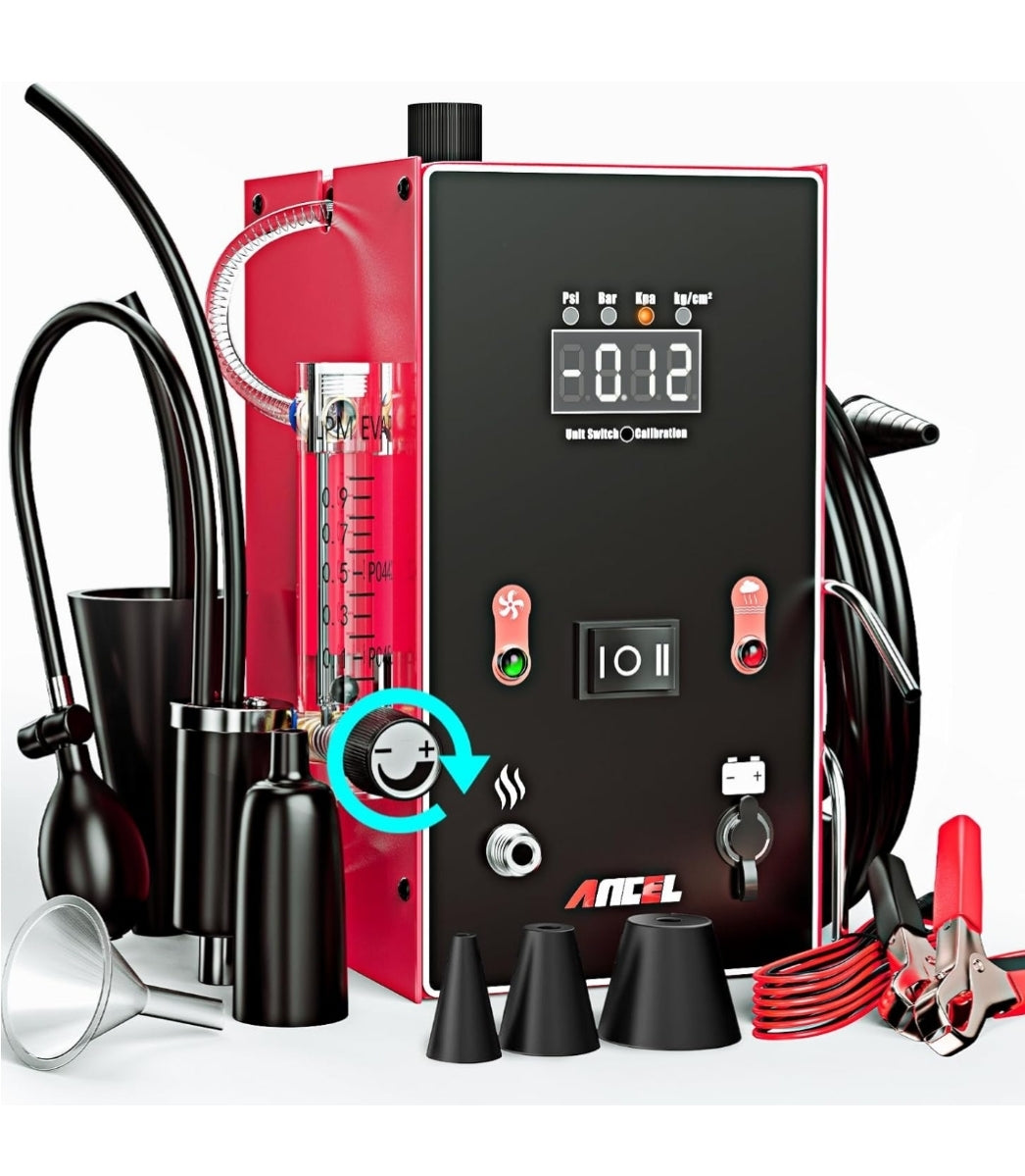 máquina de humo L300 cuenta con un medidor de presión digital avanzado, que ofrece una precisión inigualable en comparación con los medidores mecánicos tradicionales. A diferencia de los diales mecánicos que pueden perder precisión con el tiempo y son más difíciles de leer, nuestro medidor digital ofrece lecturas precisas en tiempo real en múltiples unidades (Psi, Bar, Kpa, kg/m²). Le permite controlar fácilmente los cambios de presión con claridad, ayudándole a identificar fugas de forma rápida y precisa, incluso las más pequeñas. Con ANCEL L300, obtienes datos confiables que hacen que el diagnóstico de fugas sea más rápido y eficiente, lo que garantiza ahorrar tiempo y evitar reparaciones costosas