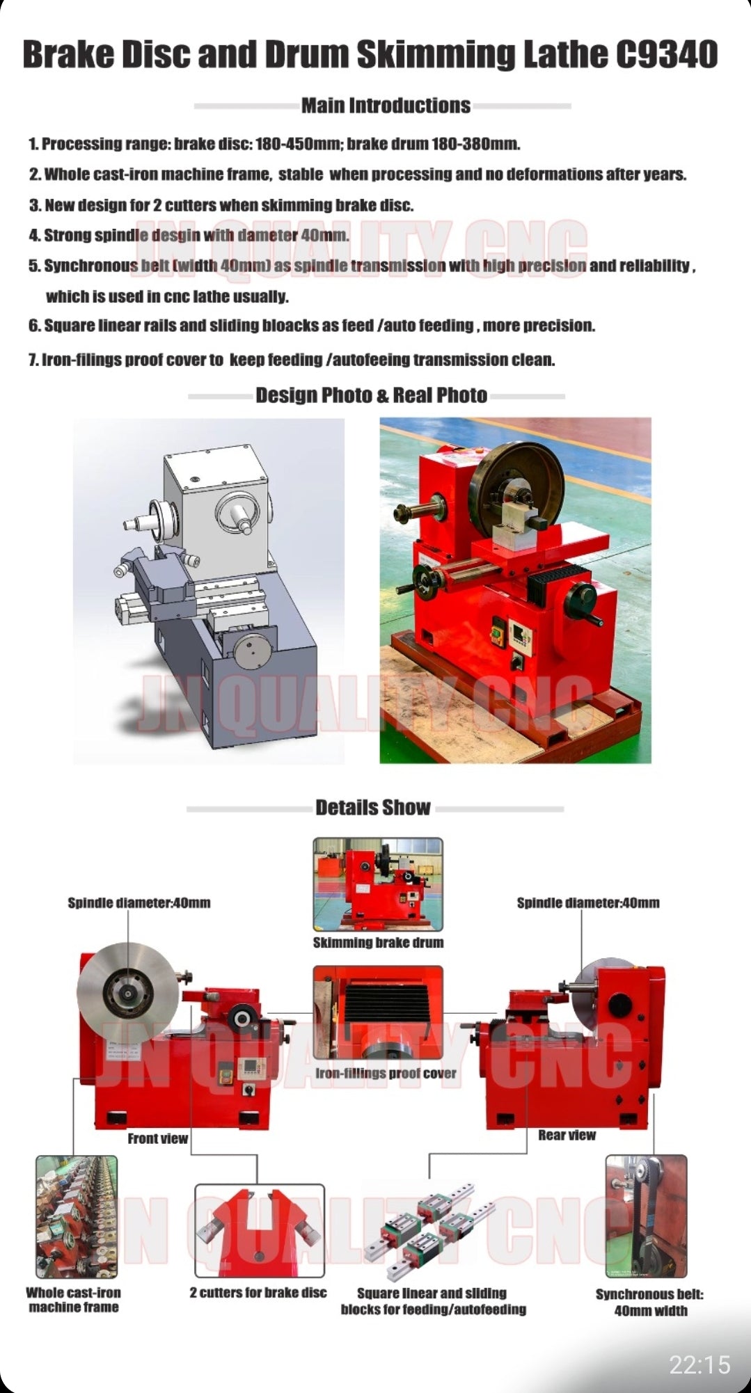 Introducción general deTorno de freno de reparación de discos de coches C9340, torno de tambor de freno de tambor para camiones, torno de freno de tambor de disco: